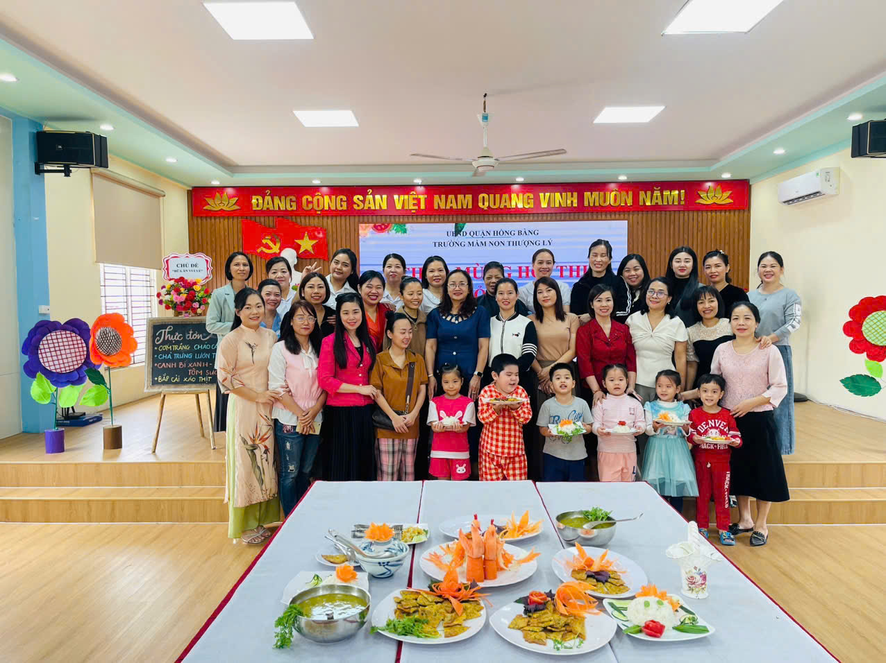 Đến dự Hội thi có rất nhiều ông bà, cha mẹ của các bé. Các cô bác nuôi thực hành đã nấu cho 300 bé. Thực đơn gồm có Bữa chính: Cơm trắng, chả trứng lươn thịt, canh bí xanh bí đỏ nấu tôm sườn, bắp cải xào thịt. Các cô bác nuôi đã lựa chọn thực phẩm tươi ngon, phối hợp thực phẩm, đảm bảo dưỡng chất, calo trong ngày. Các món ăn rất ngon, thật hấp dẫn. Cơm trắng dẻo thơm, canh bí ngon ngọt, cháo cá hồi bí đỏ bổ dưỡng, bắp cải xào cũng ngon lắm. mùi thơm của chả trướng lươn thịt bé nào cũng muốn ăn ngay. Ông bà, cha mẹ các bé đến dự giờ ăn được xem các bé tự tay xúc cơm, ăn ngoan, hết suất. Ông bà cha mẹ rất ngạc nhiên, vui mừng, tấm tắc khen mãi các cô nuôi và các cô giáo. Hội thi ' Cô nuôi giỏi" Trường Mầm non Thượng Lý đã thành công rực rỡ . Đây chính là dịp tôn vinh các cô nuôi giỏi, là cơ hội các cô nuôi được chia sẻ kính nghiệm, giao lưu học hỏi đồng thời phát huy sự sáng tạo trong xây dựng thực đơn, chế biến món ăn cho trẻ với mong muốn trê ăn ngon miệng, trê khỏe mạnh, phát triển thể chất. Xin chúc mừng các cô nuôi Trường Mầm non Thượng Lý /-rose /-rose /-heart /-rose /-rose