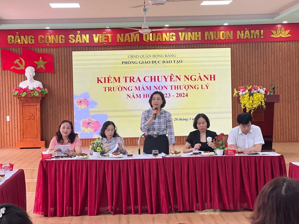 Thực hiện Quyết định số 25/QĐ-GDĐT, ngày 20/3/2024 của phòng GDĐT quận Hồng Bàng về việc kiểm tra chuyên ngành trường mầm non Thượng Lý năm học 2023-2024, ngày 28/3/2024 nhà trường long trọng được đón các đồng chí lãnh đạo, chuyên viên Phòng GDĐT cùng các đồng chí cộng tác viên tham gia đoàn kiểm tra: