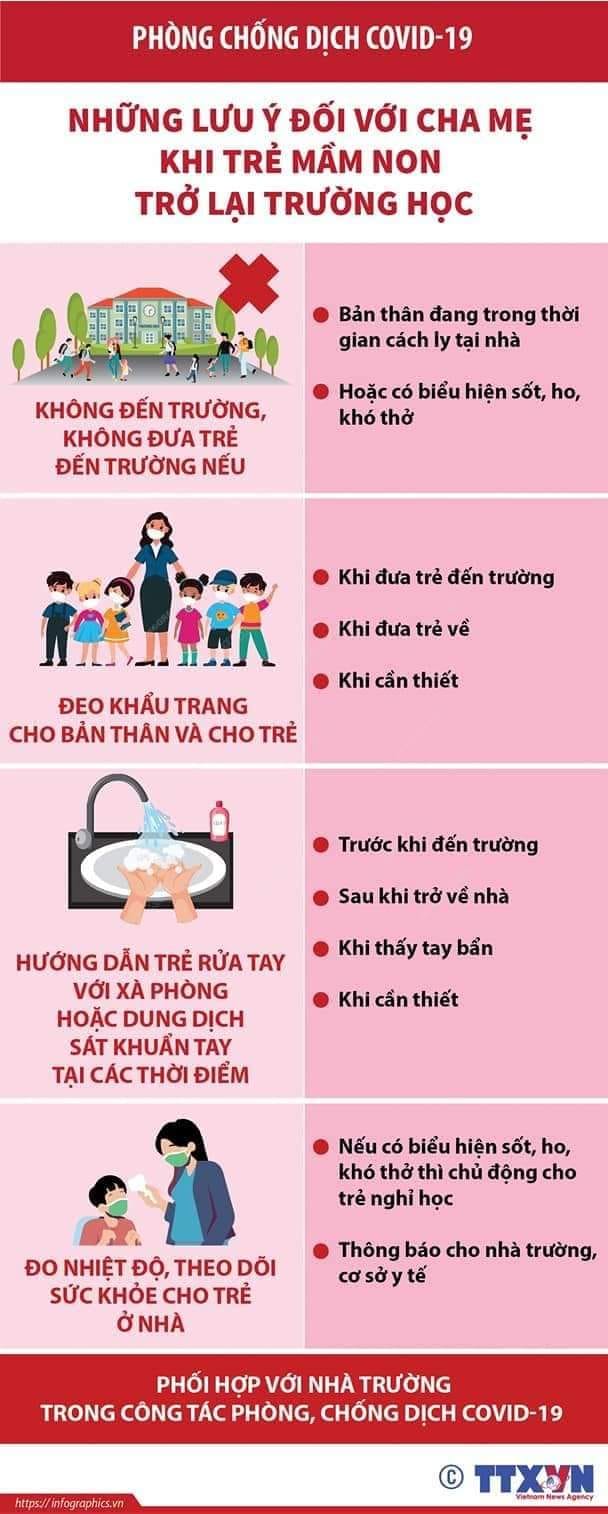 🍀 Để làm tốt công tác phòng chống dịch bệnh Covid 19 sau thời gian dài nghỉ dịch và đón các con trở lại trường học❤Kính mong quý phụ huynh lưu ý: